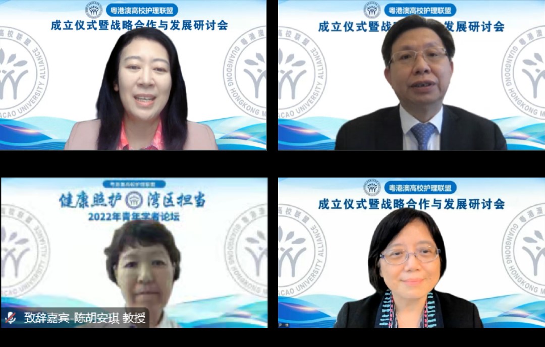2022年11月26日上午,粤港澳高校护理联盟成立仪式暨战略合作与发展研讨会通过线上线下相结合的形式举行。粤港澳高校联盟理事长单位中山大学常务副校长、附属第一医院院长肖海鹏教授,中山大学港澳台事务办公室主任、国家超级计算广州中心主任卢宇彤教授,中山大学护理学院院长彭俊生教授,香港理工大学护理学院代理院长陈胡安琪教授,澳门镜湖护理学院院长尹一桥教授出席开幕式并致辞。来自粤港澳高校护理联盟共15家首批成员院校及附属医院的领导和专家学者参加了本次会议并进行了深入交流研讨。本次会议由粤港澳高校护理联盟负责人、中山大学护理学院副院长张俊娥教授主持。